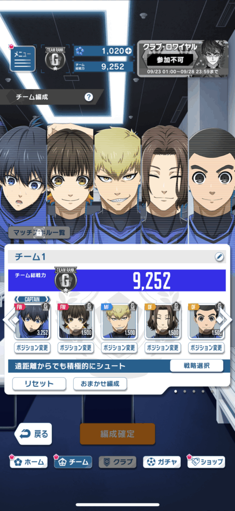 こちらはブルーロックのキャラクターを育成して、試合をしていく育成ゲームになります。