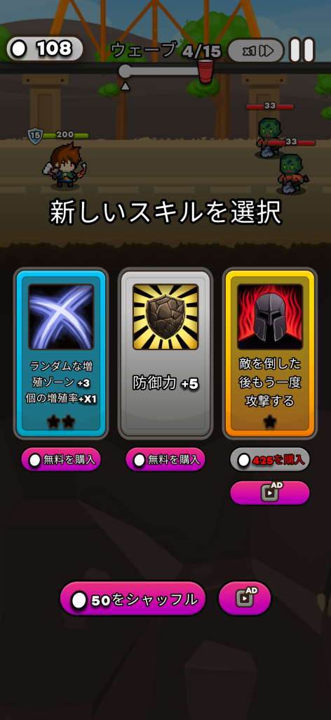 広告での強化幅が大きいのは、モブコントロールを筆頭にVoodooのゲームにありがちです。