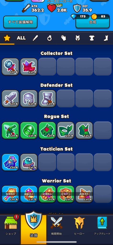 特定のセット装備もつけてみるといいかもですね!