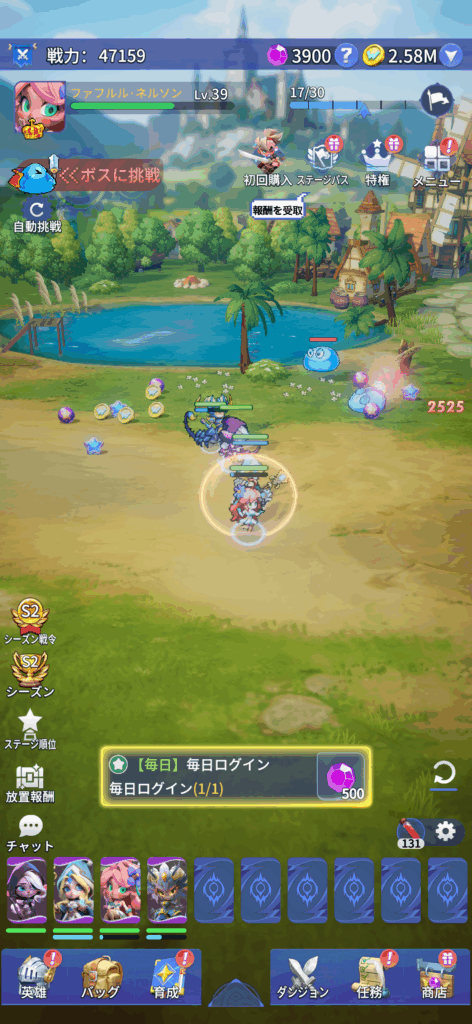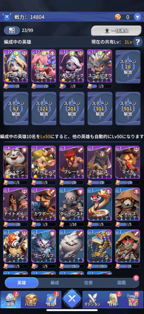 これらのアイテムには、レベル上げに使用するコイン、ガチャを英雄召喚券など様々あり、戦力を上げやすい作りになっています。