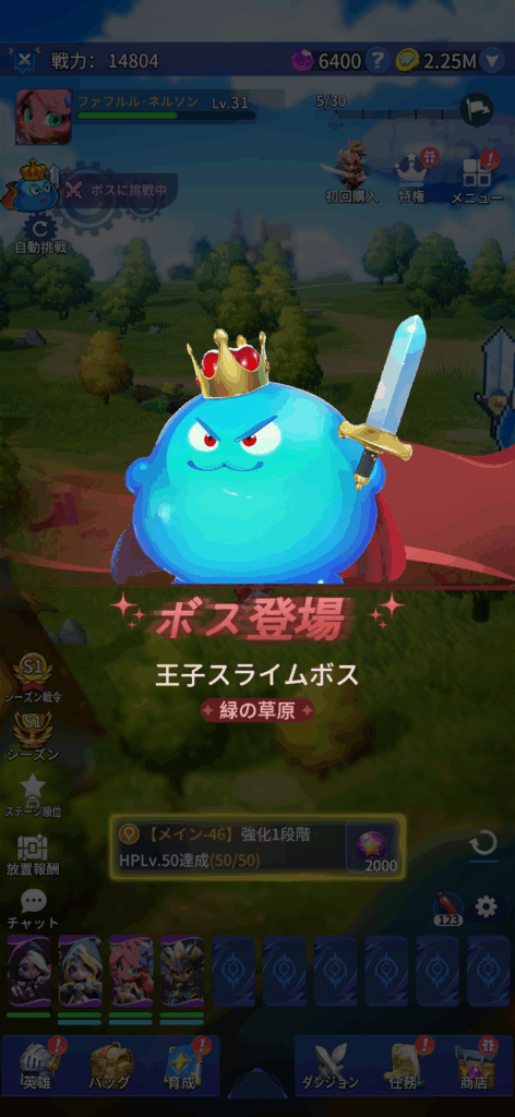 基本レベル上げが簡単なため、ボス戦もサクサク進めますが、負けた場合でも何度でも挑戦できます。