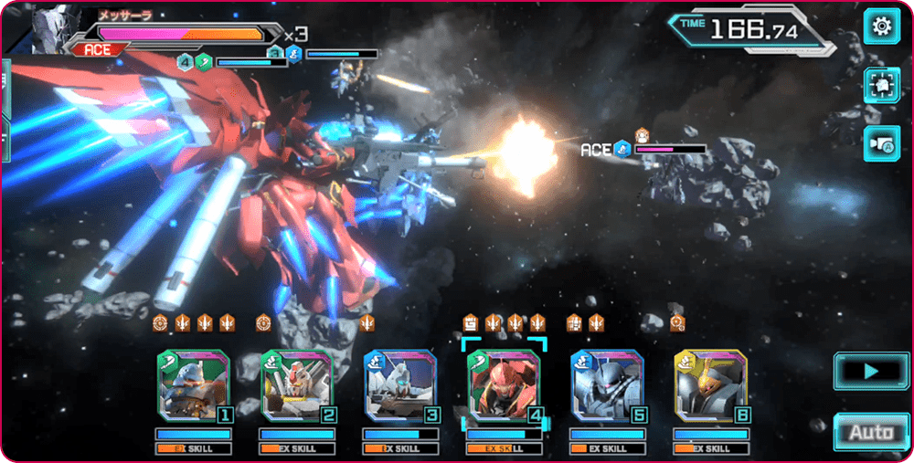 MSとパイロットの相性・スキル構成・配置場所によるダメージの通りやすさなど、「戦術ゲー」としてのやり込み要素も充実しています。