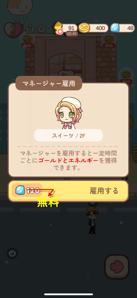 店舗の収益が上がったり、さらにはアプリを開いていない間も、自動で稼いでくれるもしてくれる優秀な人材です。
