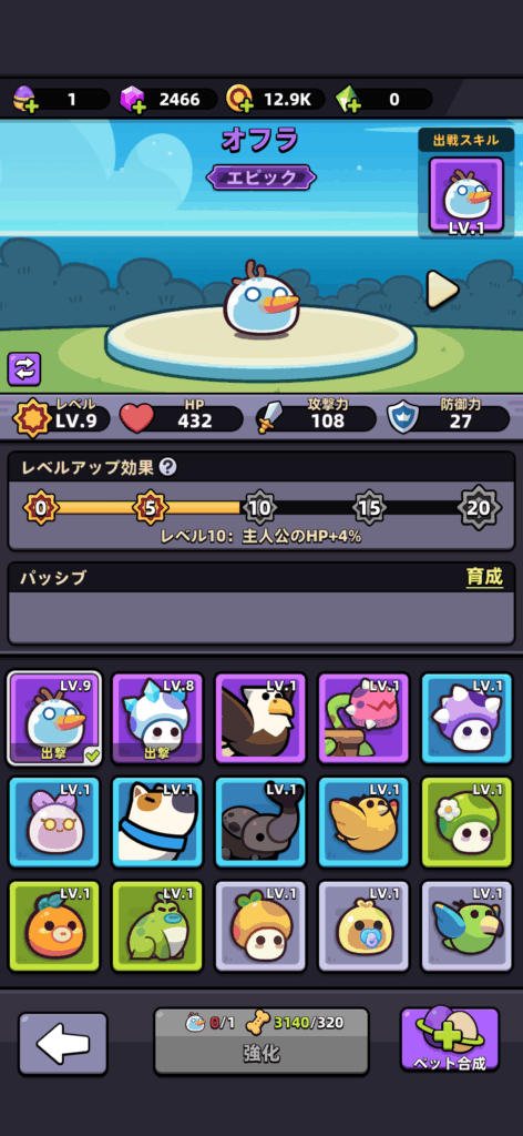 また、ペットはレベル上げが可能。レベルが上がればもちろん能力も上昇します。