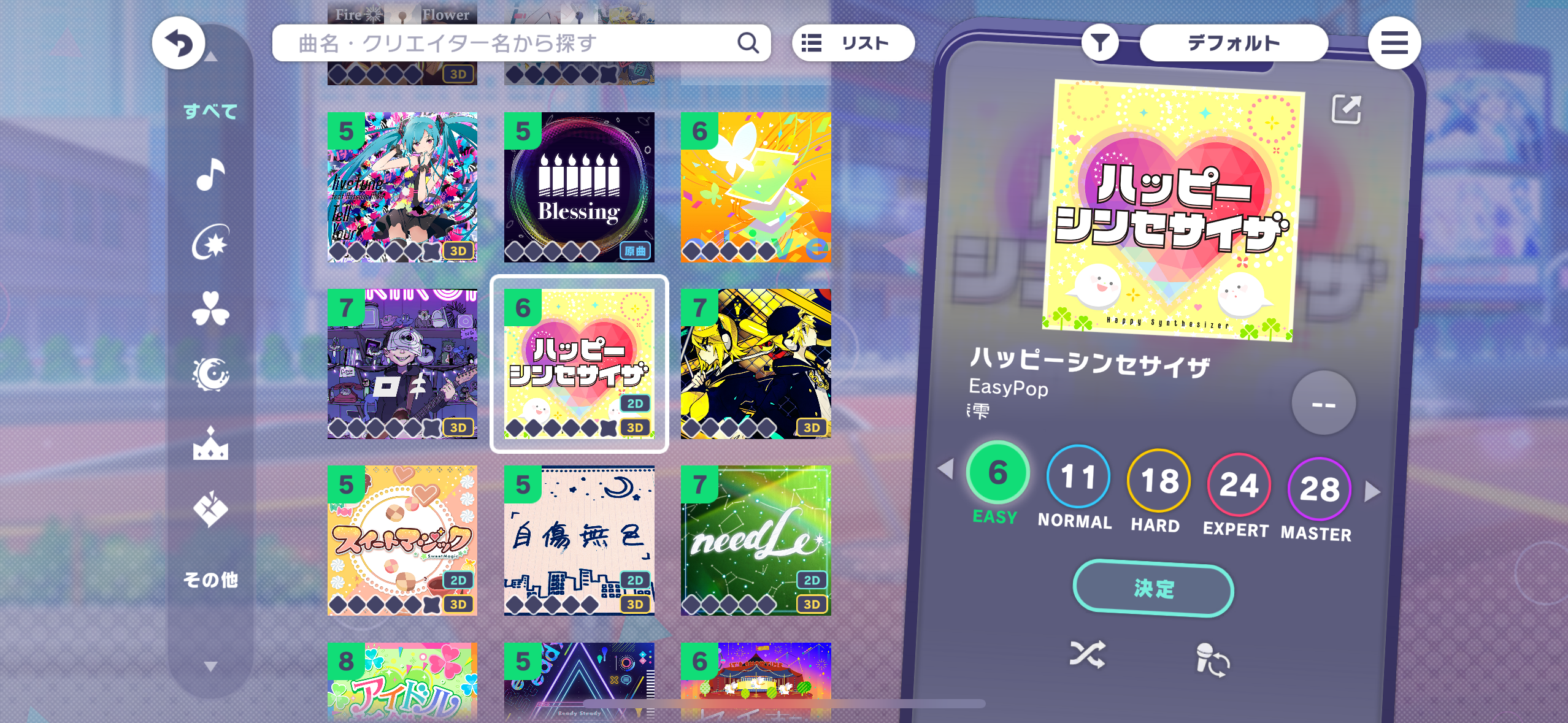 リズムゲーム初心者でも楽しめる多彩な難易度設定!