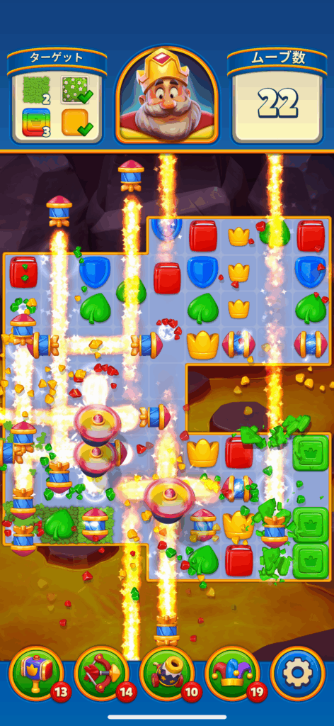 このロケットや爆弾は、単品で使うよりも「ロケット+爆弾」など、組み合わせて使ったほうが消せる範囲が伸びて、クリアしやすくなります!