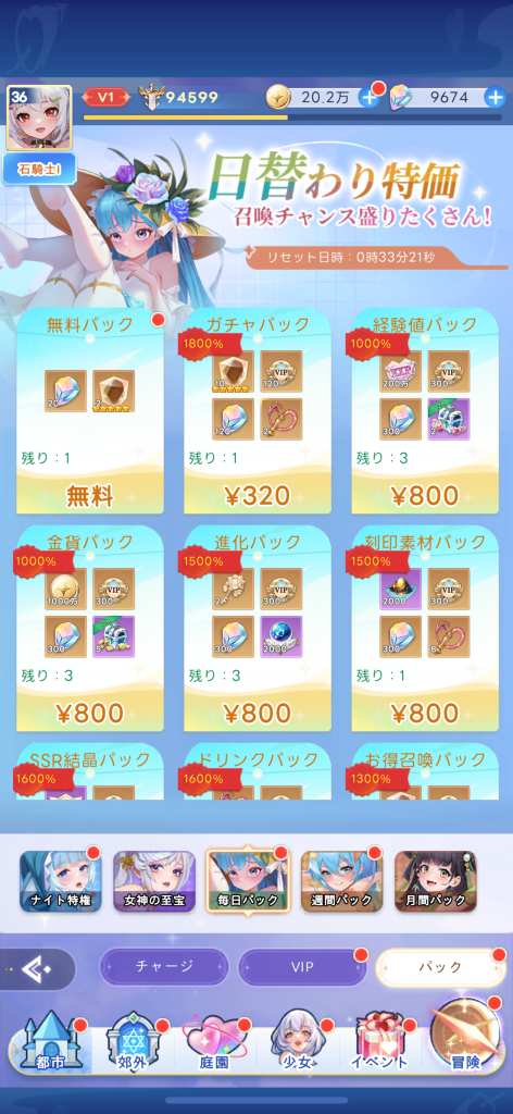 例として「毎日パック」や「週間パック」といったものでは、ログインするだけで進化素材が手に入ります。さらに「無料ゲット2025」では、「愛の鞭」が配布されるため、無課金にも優しい設計になっています。